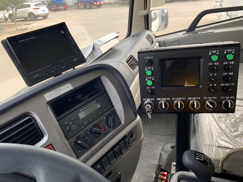 1、左右立扫为双扫盘,扫刷上加装喷水装置,用于喷雾降尘。左右立扫分开,可实现右扫和全扫等不同的作业模式。